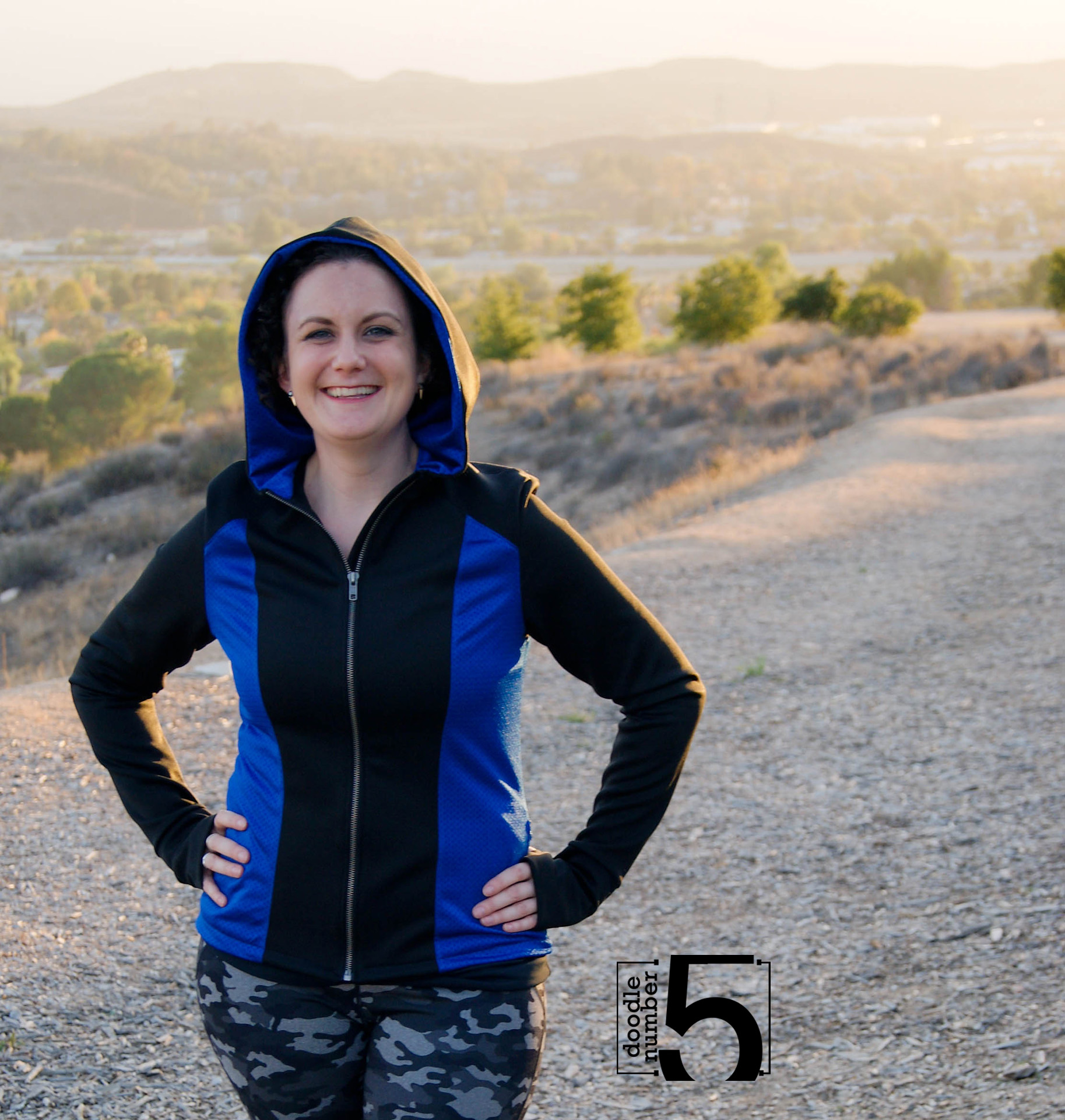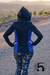 I made a second jacket identical to the first using black scuba and blue mesh – this one was meant to be my final “pretty” version. I’ve been wearing it daily – it is seriously the best dog-walking jacket I’ve ever worn. The scuba keeps me warm, the mesh lets the jacket breathe, the pockets are handy for pooper scooper baggies, and the thumbhole cuffs are just brilliant. Future pattern hack: use just the sleeve + thumbhole cuff to make an arm warmer perfect for typing in my frigid cubicle. The pattern includes an awesome alternative thumbhole method that gives you enclose seams throughout without having to slipstitch or topstitch. It’s very similar to what is used for the Thumb’s Up Tee by OUSM that I tested a few months ago. It looks complicated, but Angelyn’s illustrations are very helpful and easy to understand.