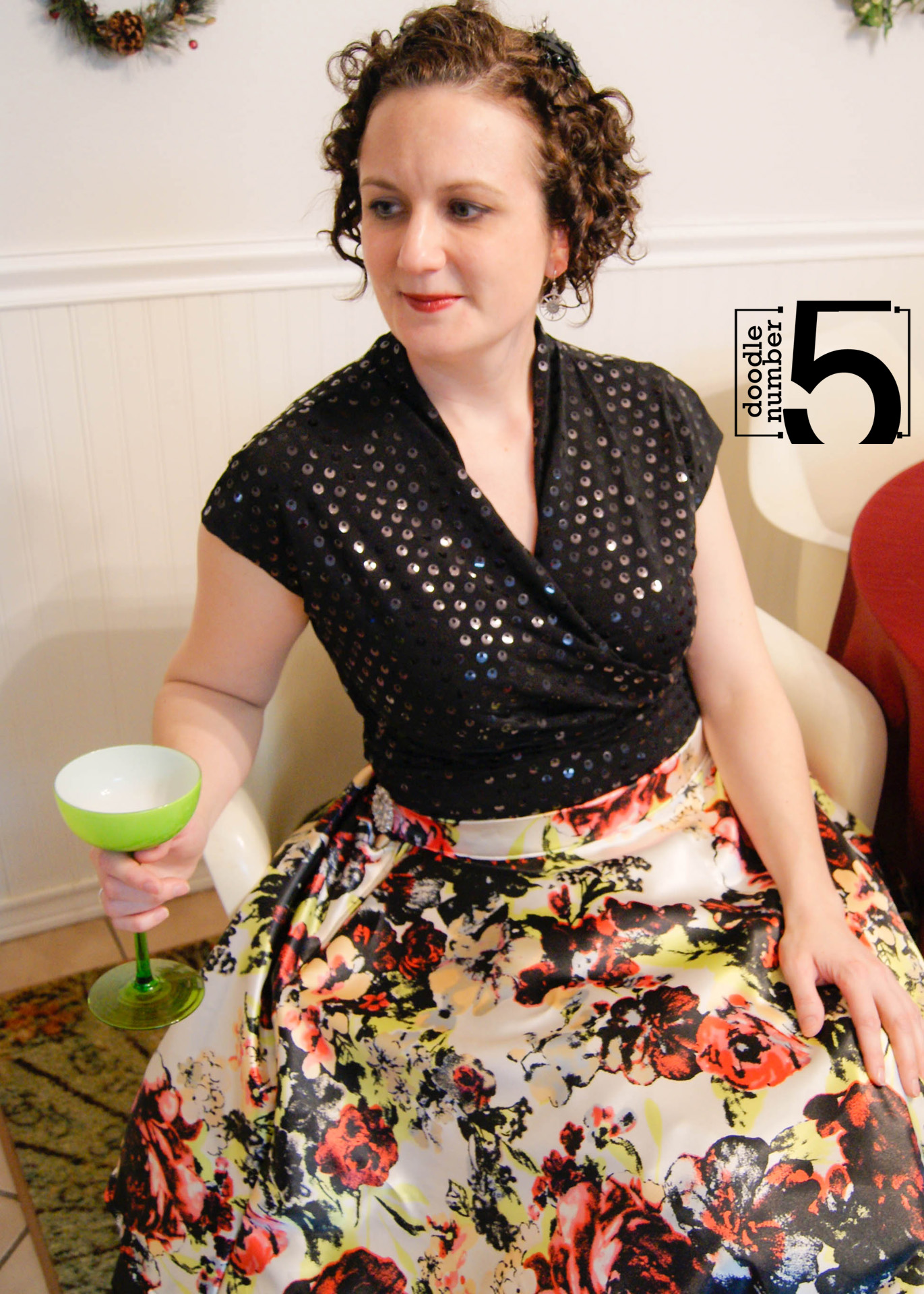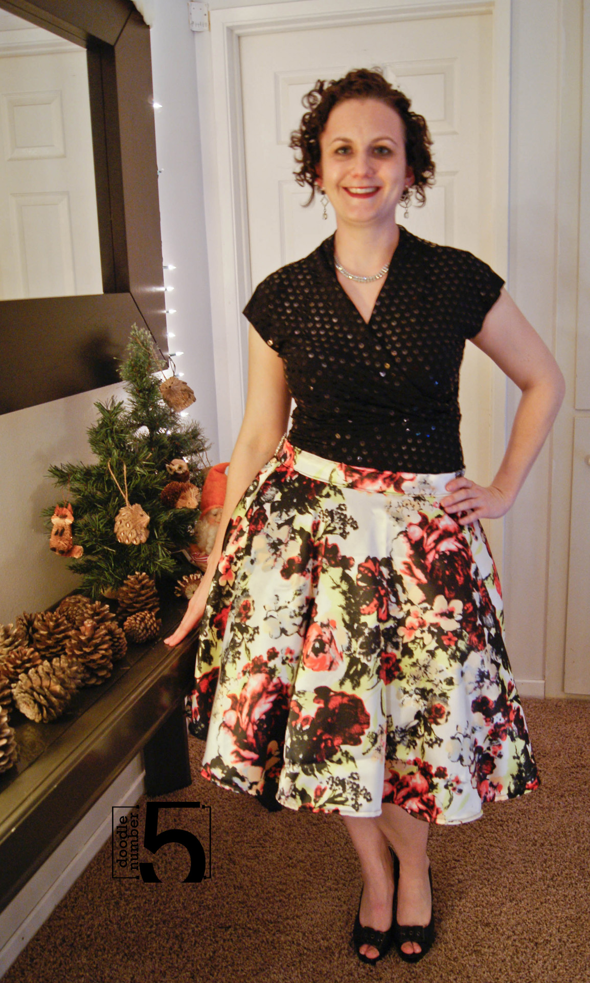 Mirri BlouseFirst, I chose to make the Mirri Wrap dress, but just the bodice. I made this in August as a tester when the pattern was released and I really love the fit and ease of it- it’s beautiful, comfortable, and incredibly flattering. I already had the Ladies Skater Skirt from Pattern Emporium, and have even made a couple of variations in the last few months. I knew it was an easy pattern I could knock out quickly with the options I wanted. Lastly, I needed to add some over-the-top, and I picked up the Patsy Petticoat from Create Kids Couture. Honestly, I probably didn’t *need* this pattern- it’s easy enough to make a petticoat by sewing a few very long rectangles of fabric together in tiers and gathering like crazy. But every once in a while I’m lazy enough to let someone else do the math for me, and this pattern was worth picking up while it was on sale. I’m going to write up a separate post just for the petticoat because it lets me showcase my new sewing machine!