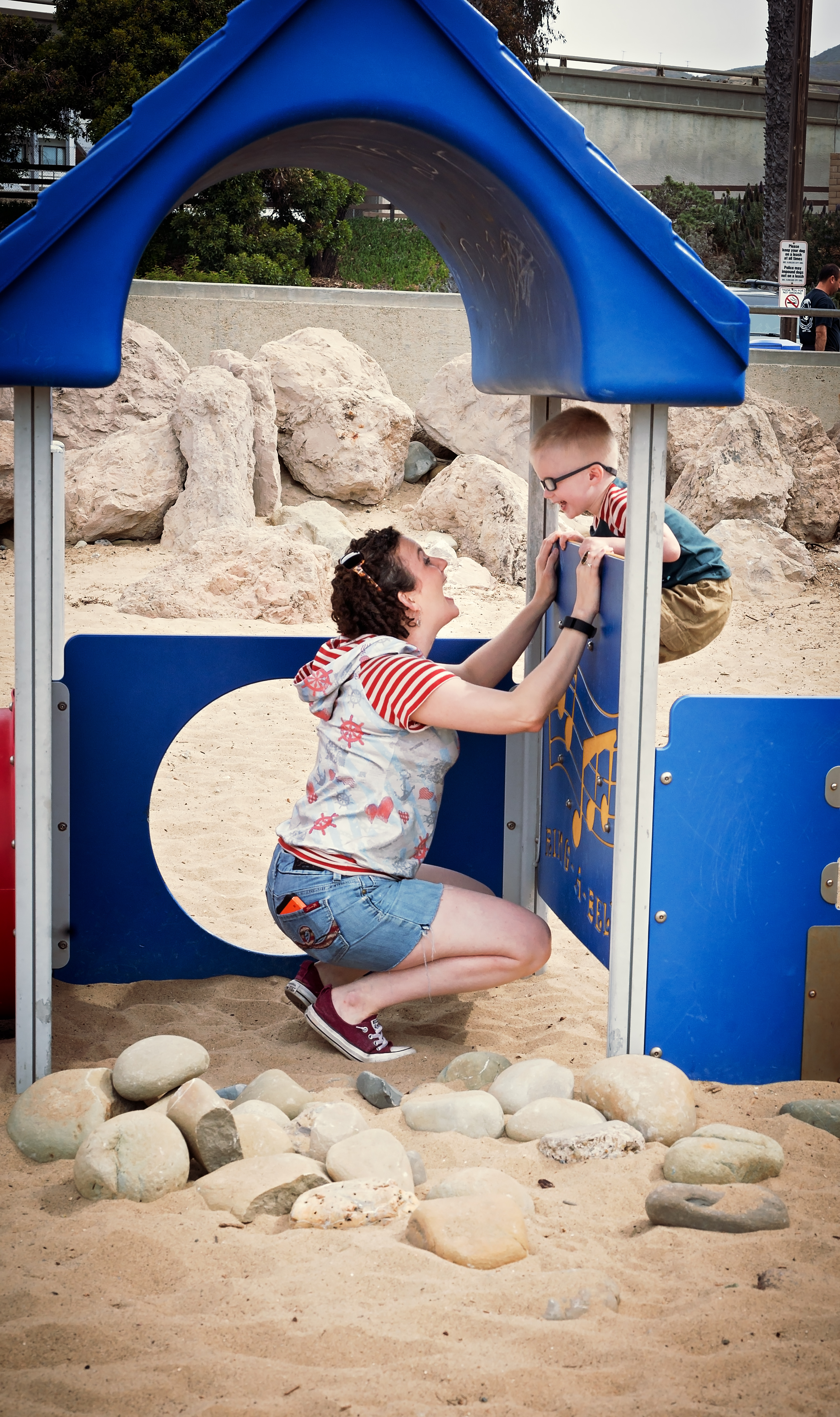 My photographer Maggie @fotog.gal very generously offered to do a Mothers’ Day shoot for us, so made James a Streamline tee and used the Best Day Ever panel from Peekaboo (perfectly appropriate, yes?). For mine, I used Vintage Sailor Babe from Smoogie, and our stripes are from Michael Levine’s Loft in Downtown LA. These specific custom knits are sold out, but I linked the shops. This was a great, casual shoot- we didn’t pose at all (that’s pretty obvious)- Maggie just let us monkey around and managed to still get some great pictures.
