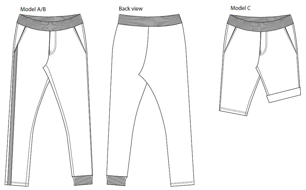 Pattern extras Printed inseam ruler, band measurements included, layers